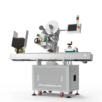 SKILT Auto Flat Pouch Labeling Machine Plane Top Surface Labeler Label Applicator with Feeding Manufacturer Since 1998